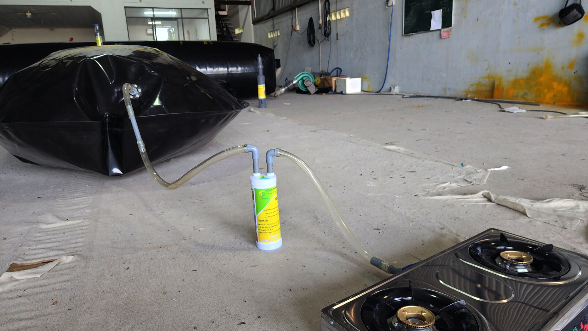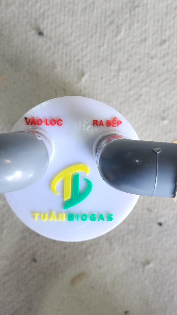- Lắp lọc đúng chiều: đầu vào từ túi biogas → bình lọc; đầu ra từ bình lọc → bếp. Khi có mùi lại hoặc lửa yếu thì thay hạt lọc.