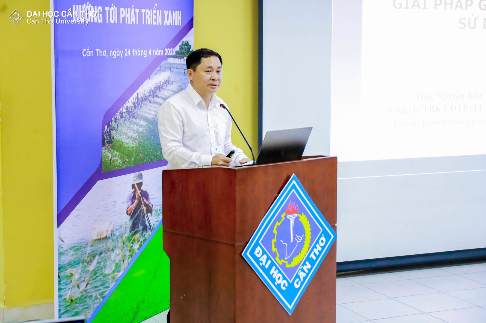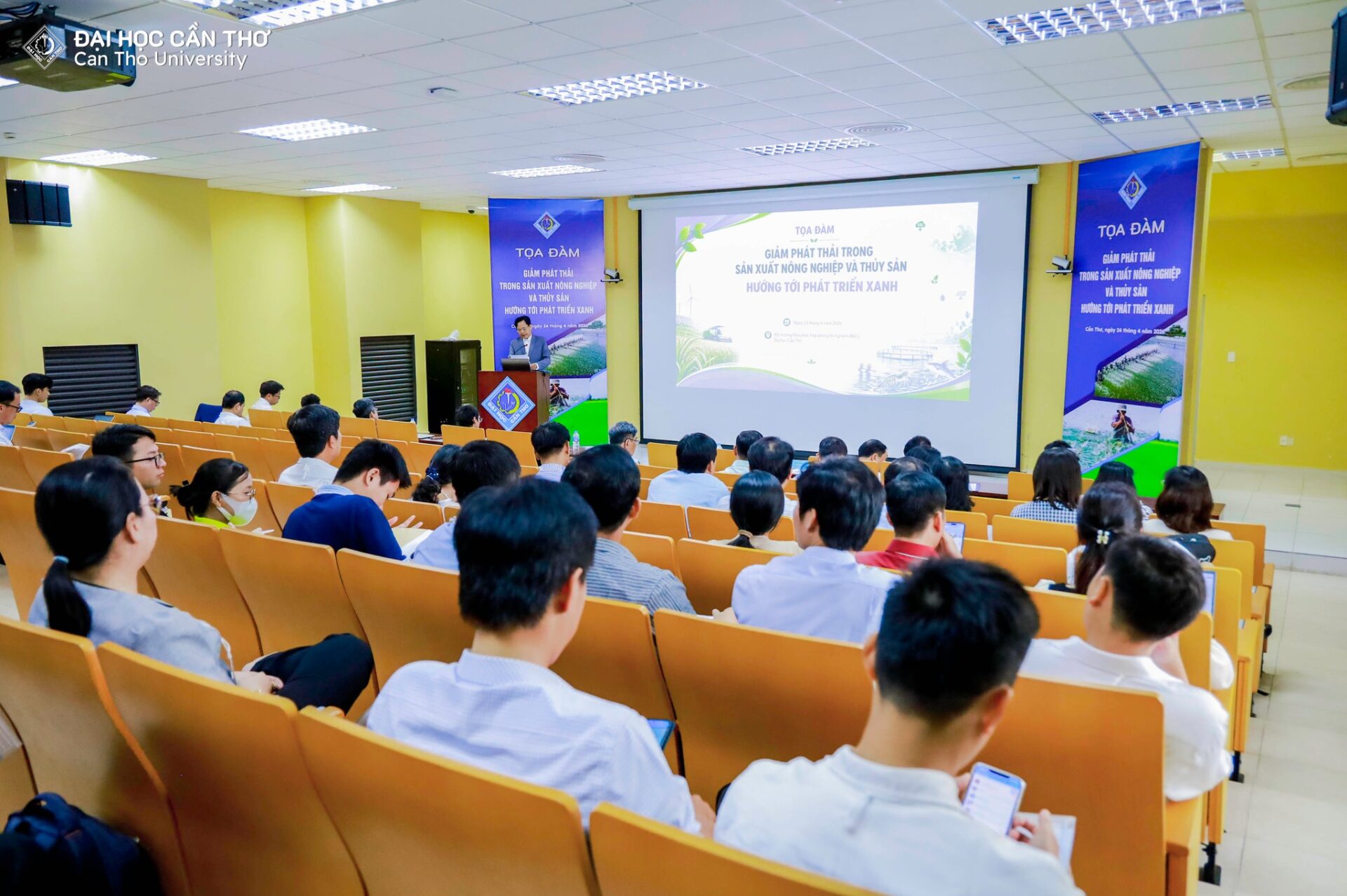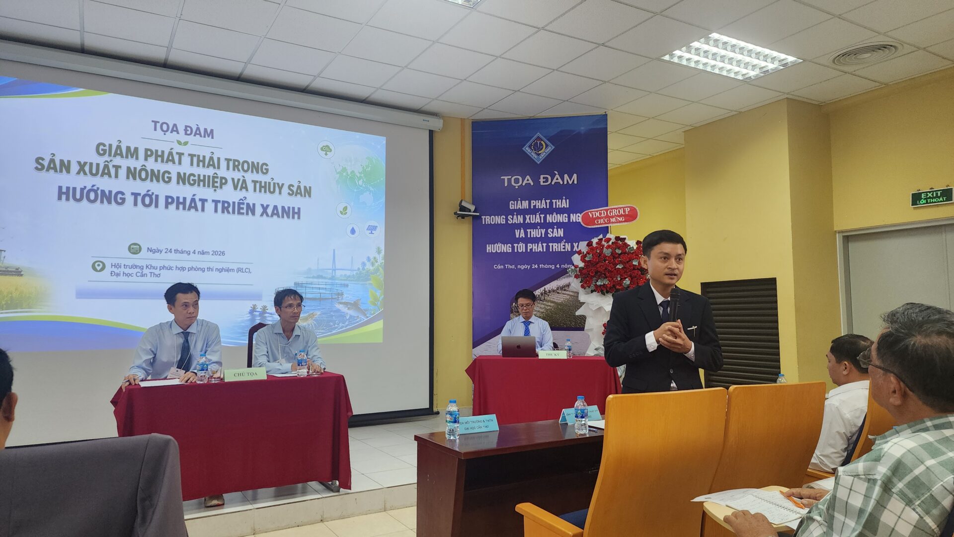 Sáng ngày 24/4/2026, Khoa Môi trường và Tài nguyên thiên nhiên – Đại học Cần Thơ tổ chức Tọa đàm “Giảm phát thải trong sản xuất nông nghiệp và thủy sản hướng tới phát triển xanh” nhằm tạo diễn đàn trao đổi học thuật, kết nối doanh nghiệp và các bên liên quan trong việc thúc đẩy các giải pháp giảm phát thải, sử dụng hiệu quả tài nguyên và phát triển mô hình sản xuất bền vững tại vùng Đồng bằng sông Cửu Long.
