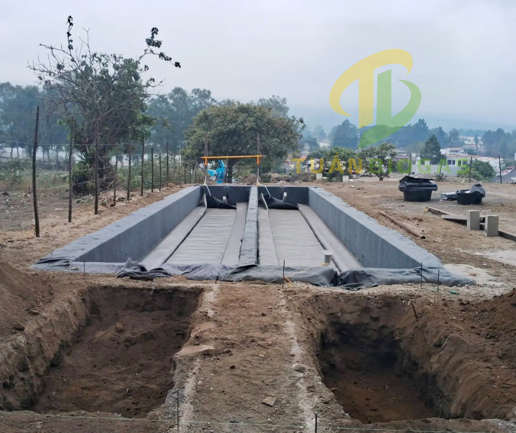 Lưu ý: Nếu có sẵn phân đã hoai, cho vài trăm kg trước để thời gian sinh gas sớm hơn. Có thể dùng phân heo, bò, gà, … tốt nhất là hỗn hợp nhiều loại.